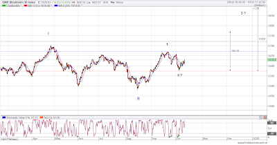 Räkningen för OMX30 mer sannolika ala DAX alt. med P1 och P2 ner mot 1550 - 1570 området innan rekyl klar.