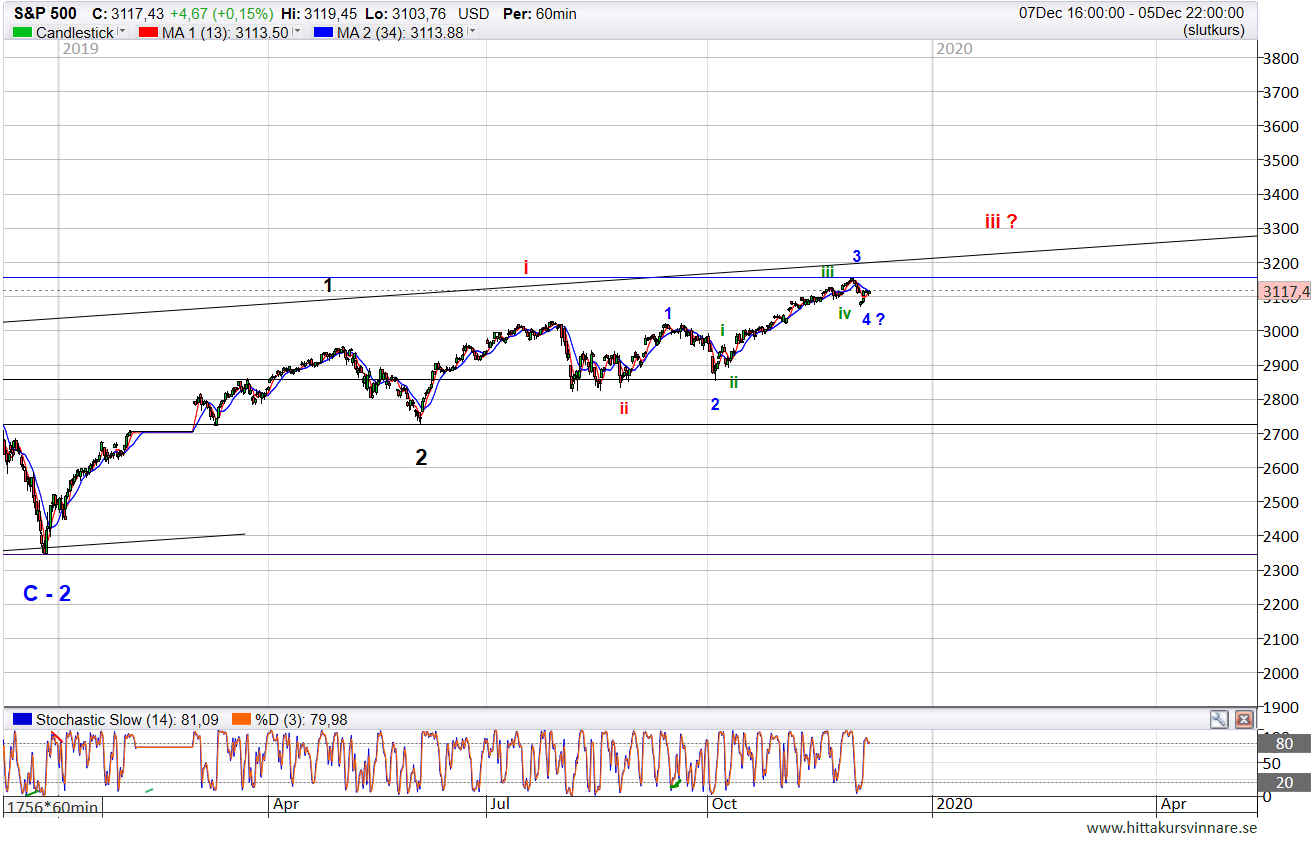 Tertiärtrends 4:an (blå) kan vara klar, men mer idealiskt med en liten snutt ner till mellan fib23,6 och 38,2.
